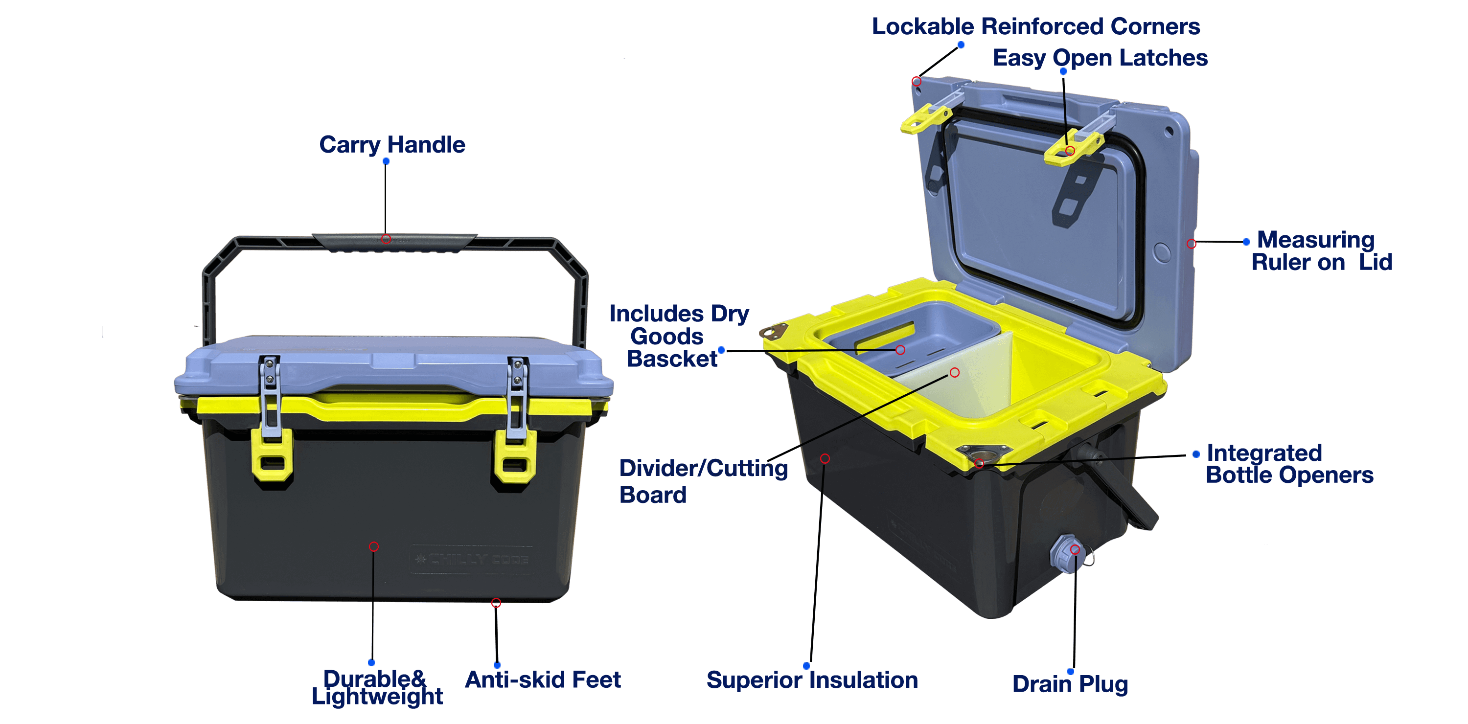 Weighing up to 30% lighter than traditional rotomolded coolers, NEW coolers are built for your trips to the park, days on the boat, and weekends at the campsite. Plus, they ensure your food and drinks stay at maximum coldness throughout your journey.